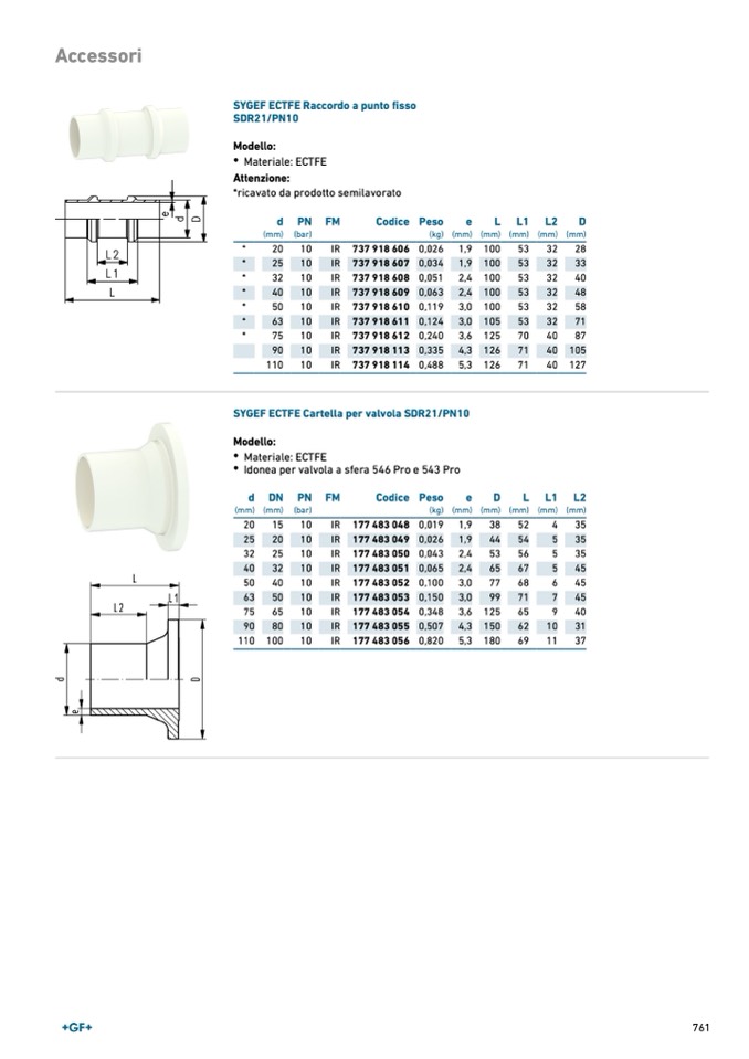 SYGEF ECTFE Cartella per valvola SDR21/PN10
