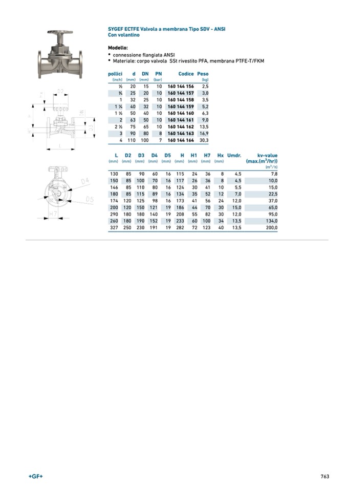 SYGEF ECTFE Valvola a membrana Tipo SDV - ANSI