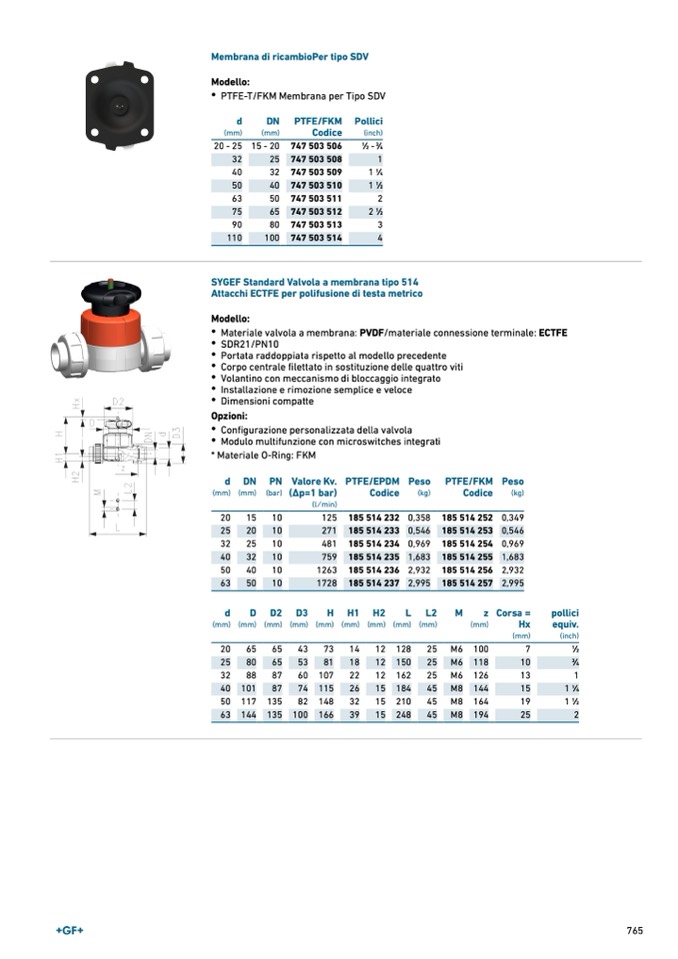 Materiale valvola a membrana: PVDF/materiale connessione terminale: ECTFE