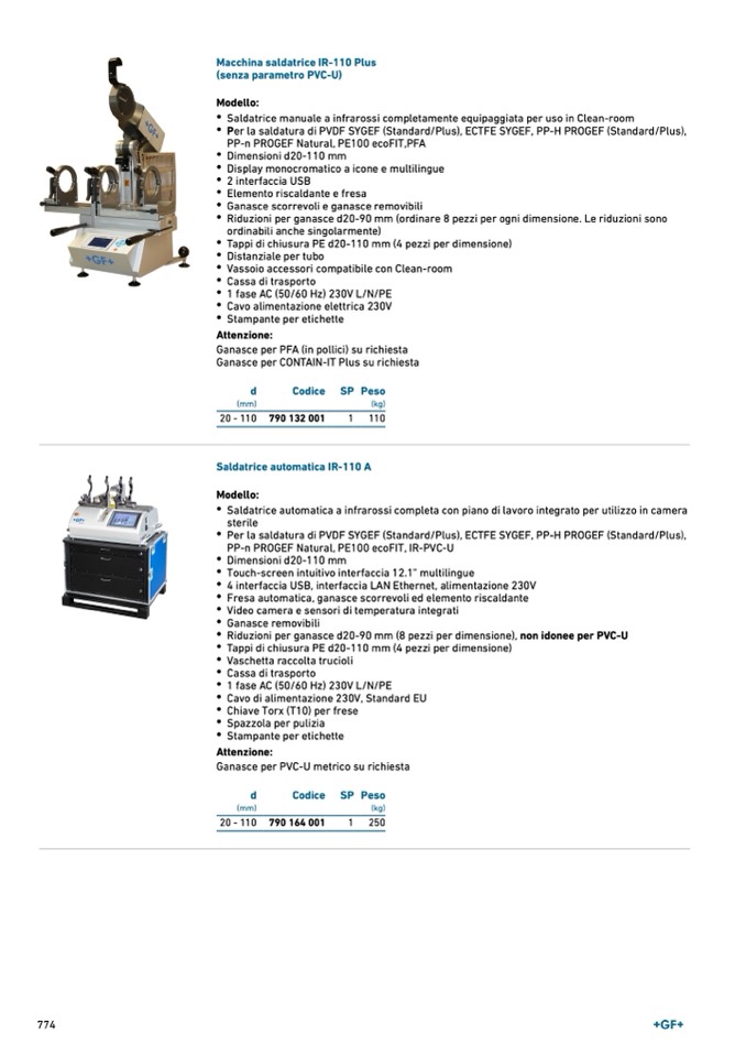 Per la saldatura di PVDF SYGEF (Standard/Plus), ECTFE SYGEF, PP-H PROGEF (Standard/Plus),