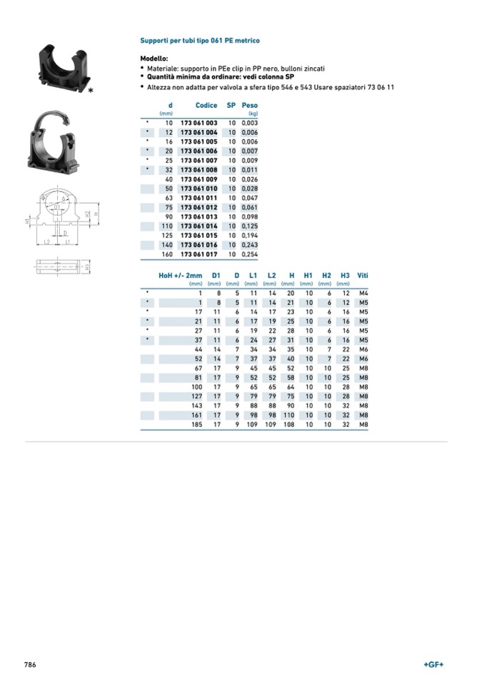 Materiale: supporto in PEe clip in PP nero, bulloni zincati