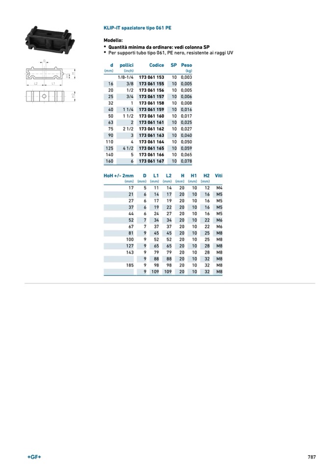 Per supporti tubo tipo 061, PE nero, resistente ai raggi UV