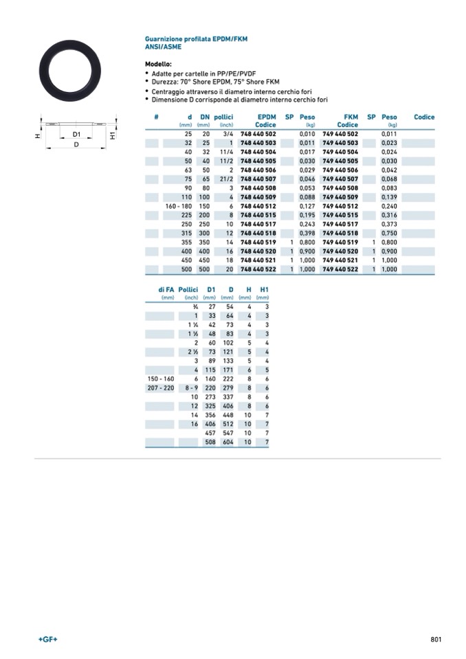 Durezza: 70° Shore EPDM, 75° Shore FKM
