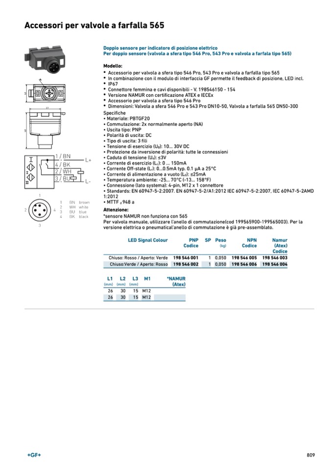 Per doppio sensore (valvola a sfera tipo 546 Pro, 543 Pro e valvola a farfala tipo 565)