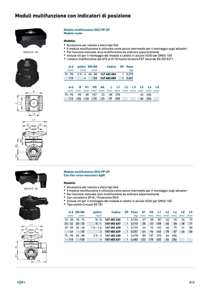 I moduli multifunzione dal d75 al d110 hanno foratura F07 secondo EN ISO 5211