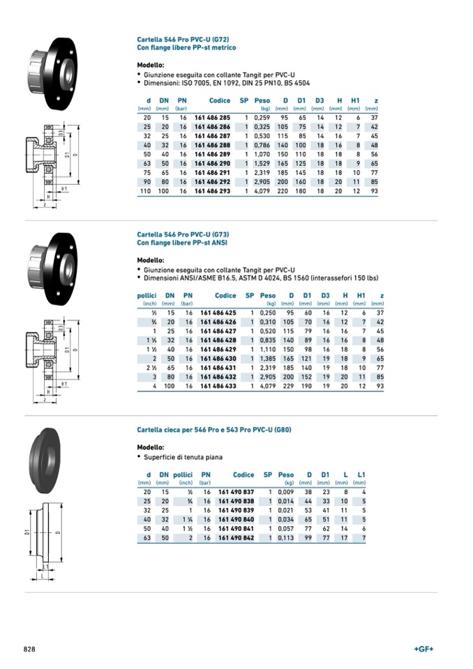 Dimensioni: ISO 7005, EN 1092, DIN 25 PN10, BS 4504