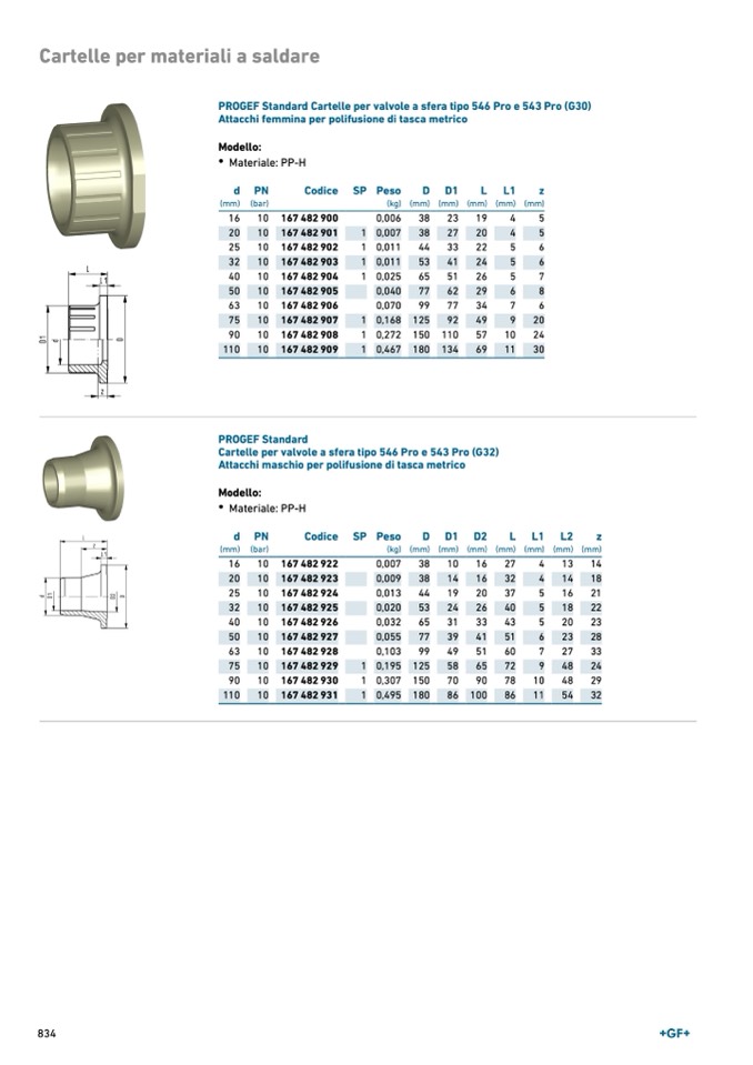 PROGEF Standard Cartelle per valvole a sfera tipo 546 Pro e 543 Pro (G30)