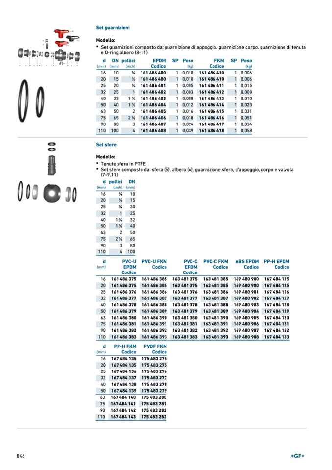 Set sfere composto da: sfera (5), albero (6), guarnizione sfera, d'appoggio, corpo e valvola