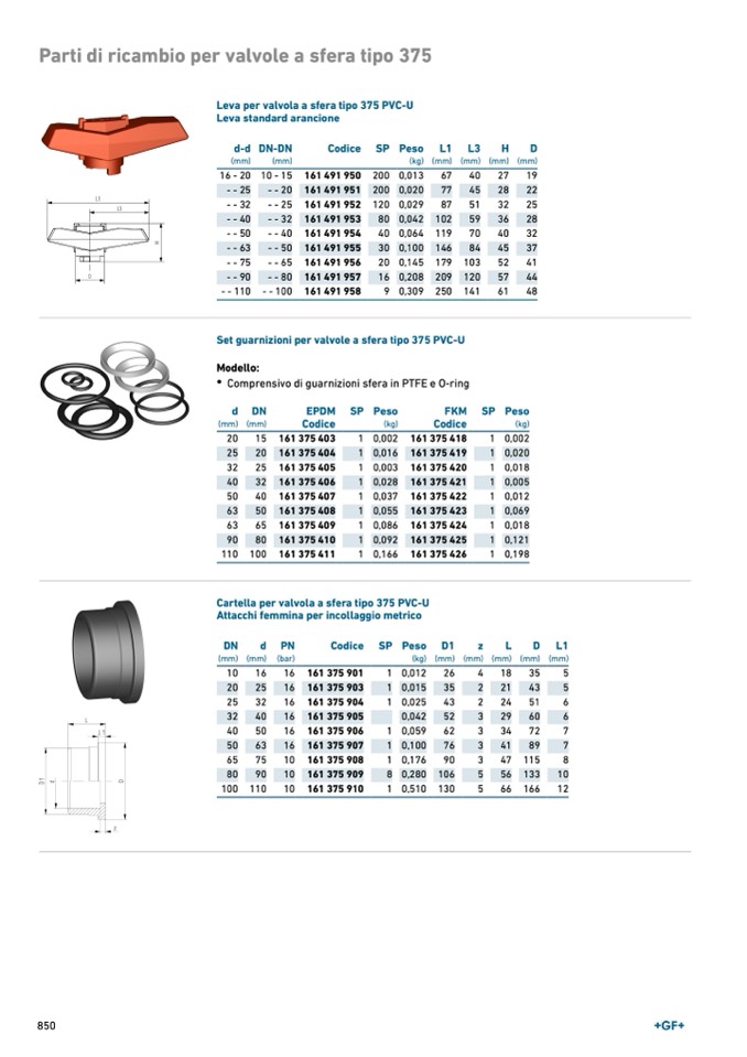 Set guarnizioni per valvole a sfera tipo 375 PVC-U