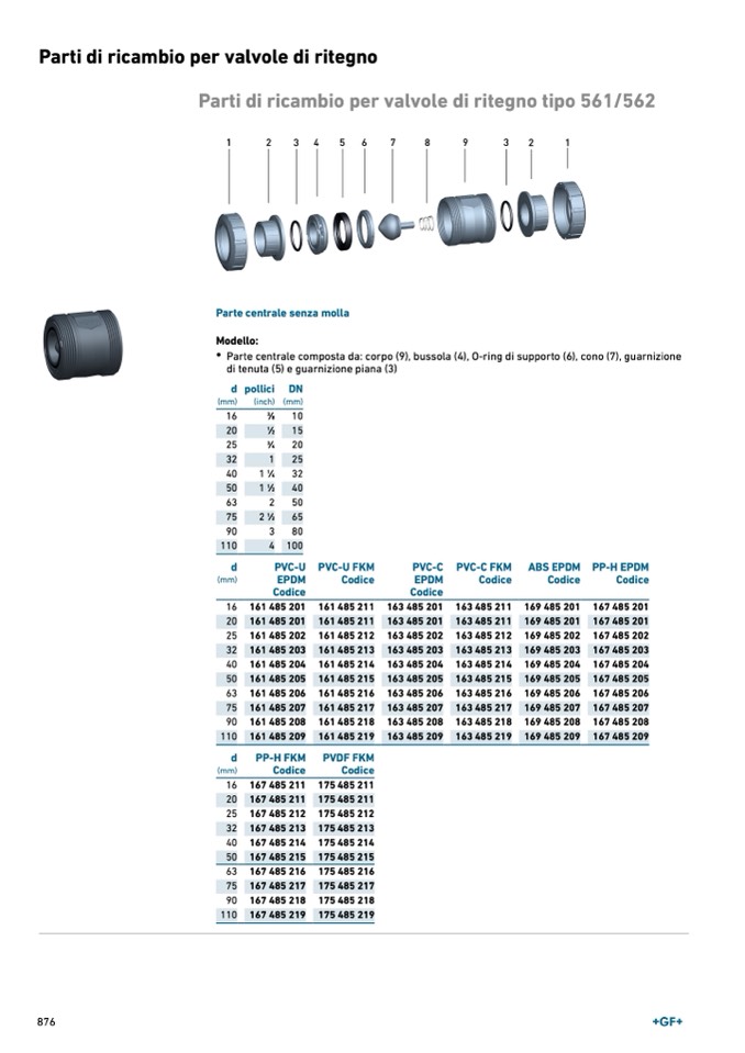 Parte centrale composta da: corpo (9), bussola (4), O-ring di supporto (6), cono (7), guarnizione