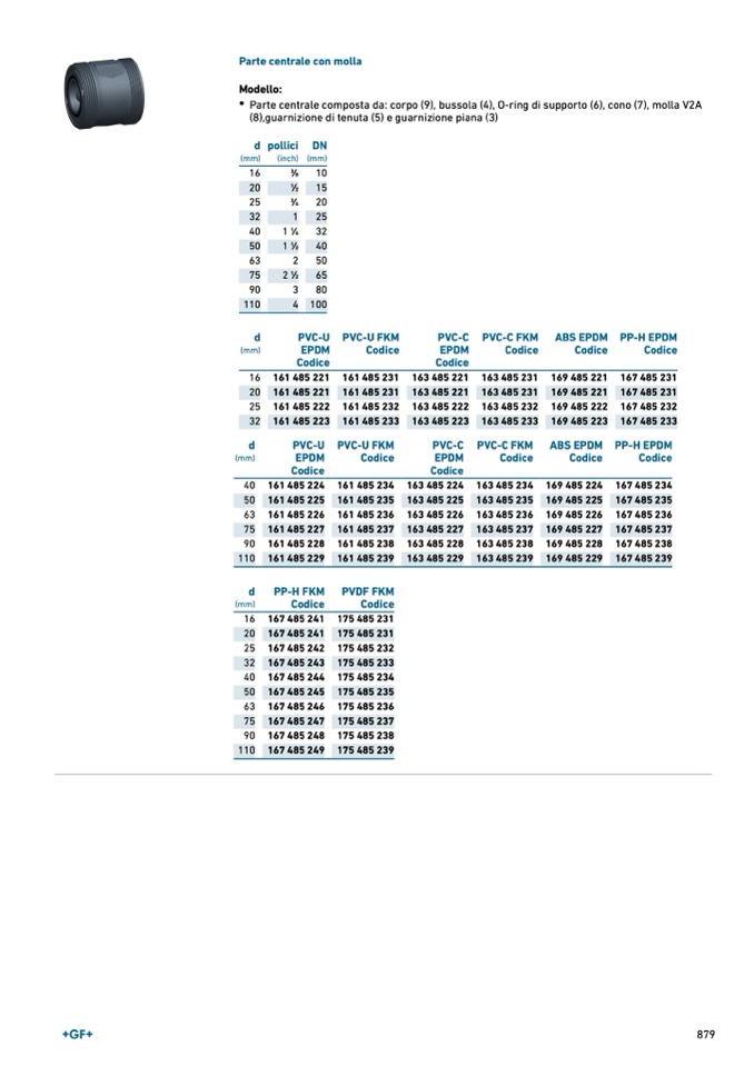Parte centrale composta da: corpo (9), bussola (4), O-ring di supporto (6), cono (7), molla V2A