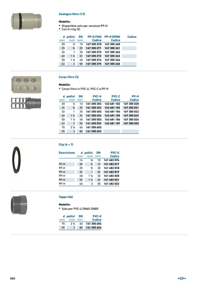 Corpo filtro in PVC-U, PVC-C e PP-H
