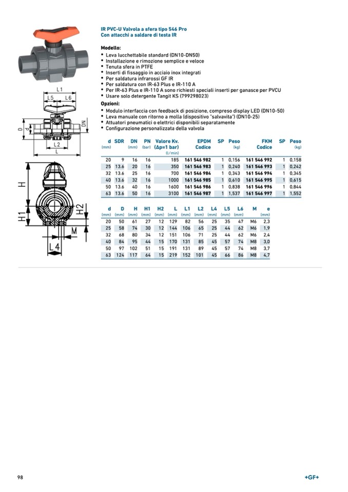 IR PVC-U Valvola a sfera tipo 546 Pro