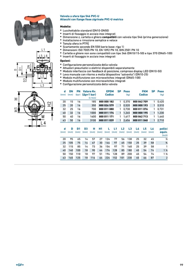 Valvola a sfera tipo 546 PVC-U