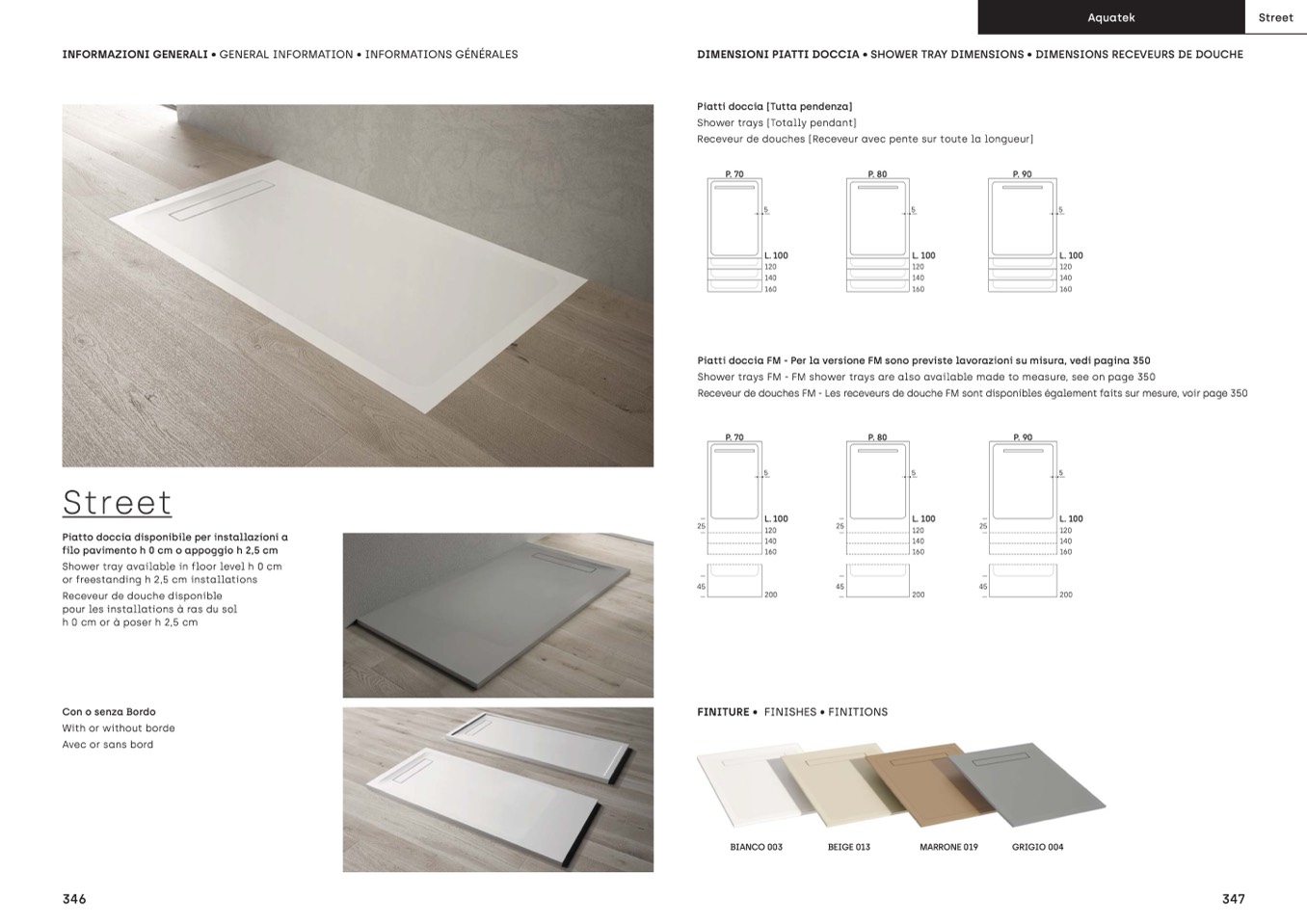DIMENSIONI PIATTI DOCCIA • SHOWER TRAY DIMENSIONS • DIMENSIONS RECEVEURS DE DOUCHE