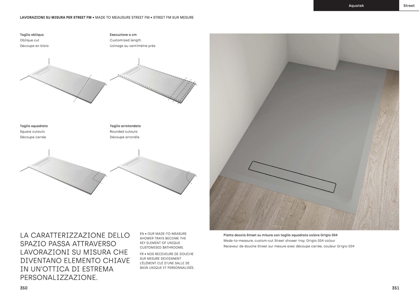 Made-to-measure, custom-cut Street shower tray, Grigio 004 colour