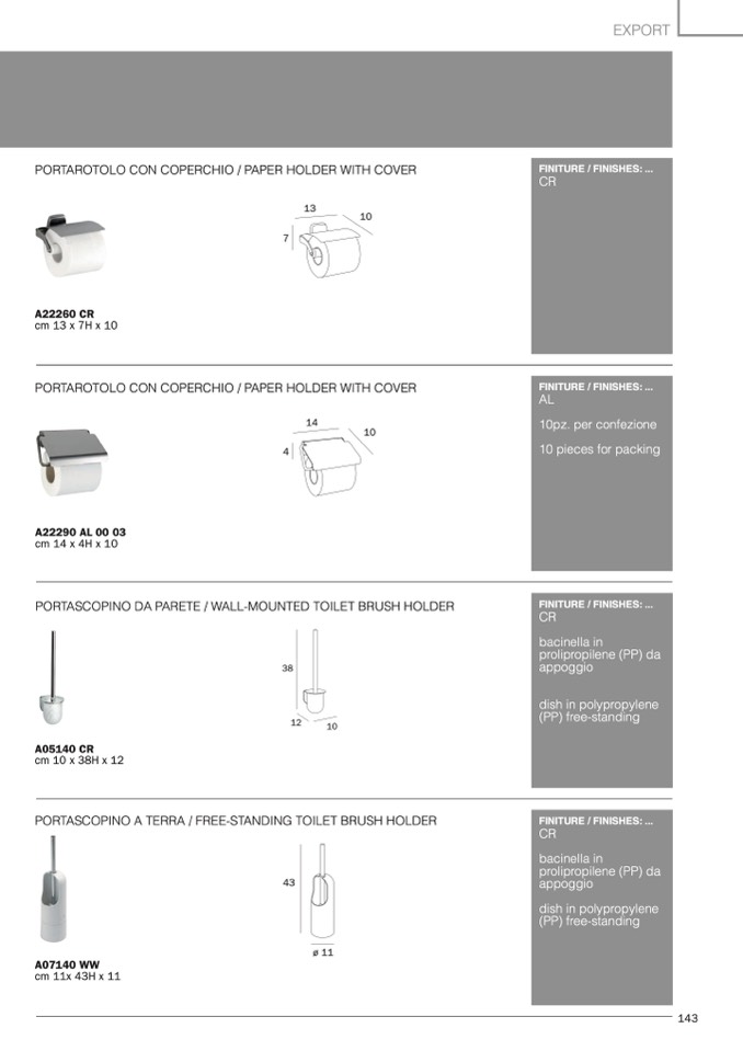 PORTAROTOLO CON COPERCHIO / PAPER HOLDER WITH COVER