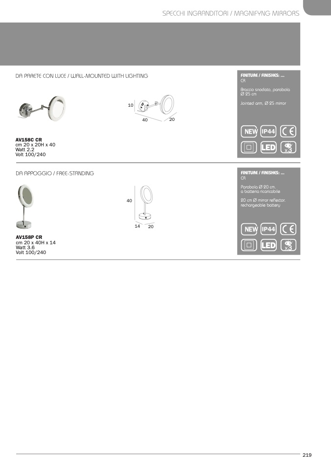 DA PARETE CON LUCE / WALL-MOUNTED WITH LIGHTING