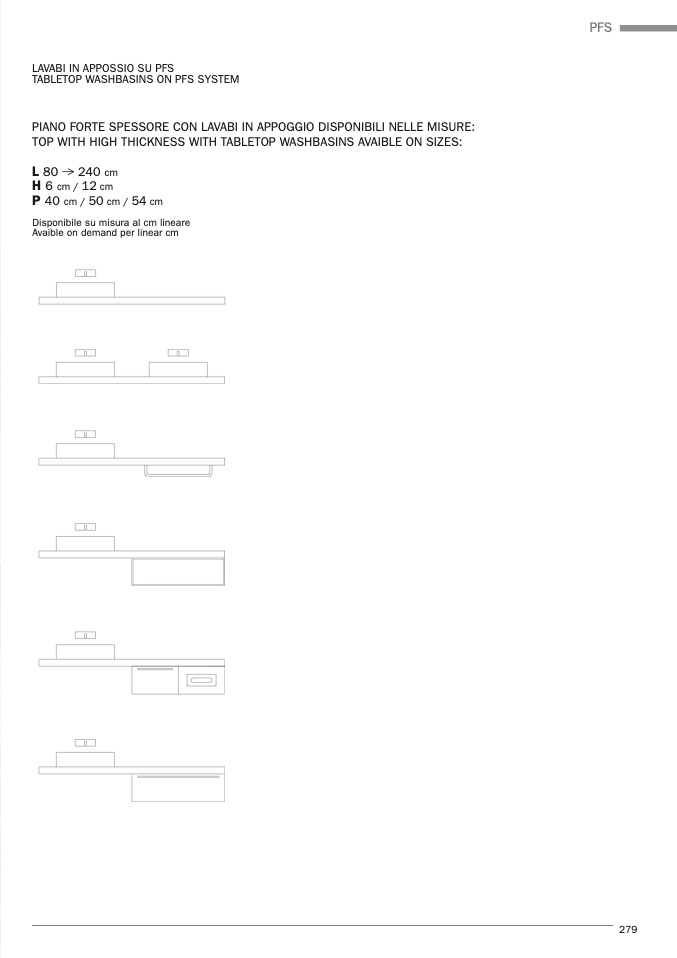 PIANO FORTE SPESSORE CON LAVABI IN APPOGGIO DISPONIBILI NELLE MISURE:
