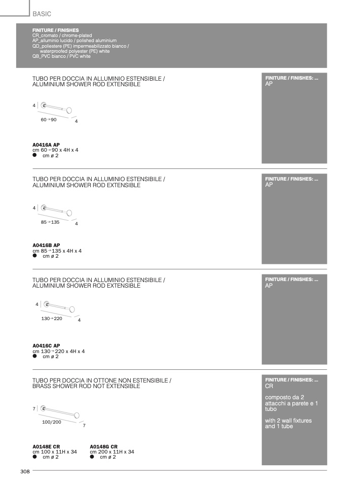 TUBO PER DOCCIA IN ALLUMINIO ESTENSIBILE /
