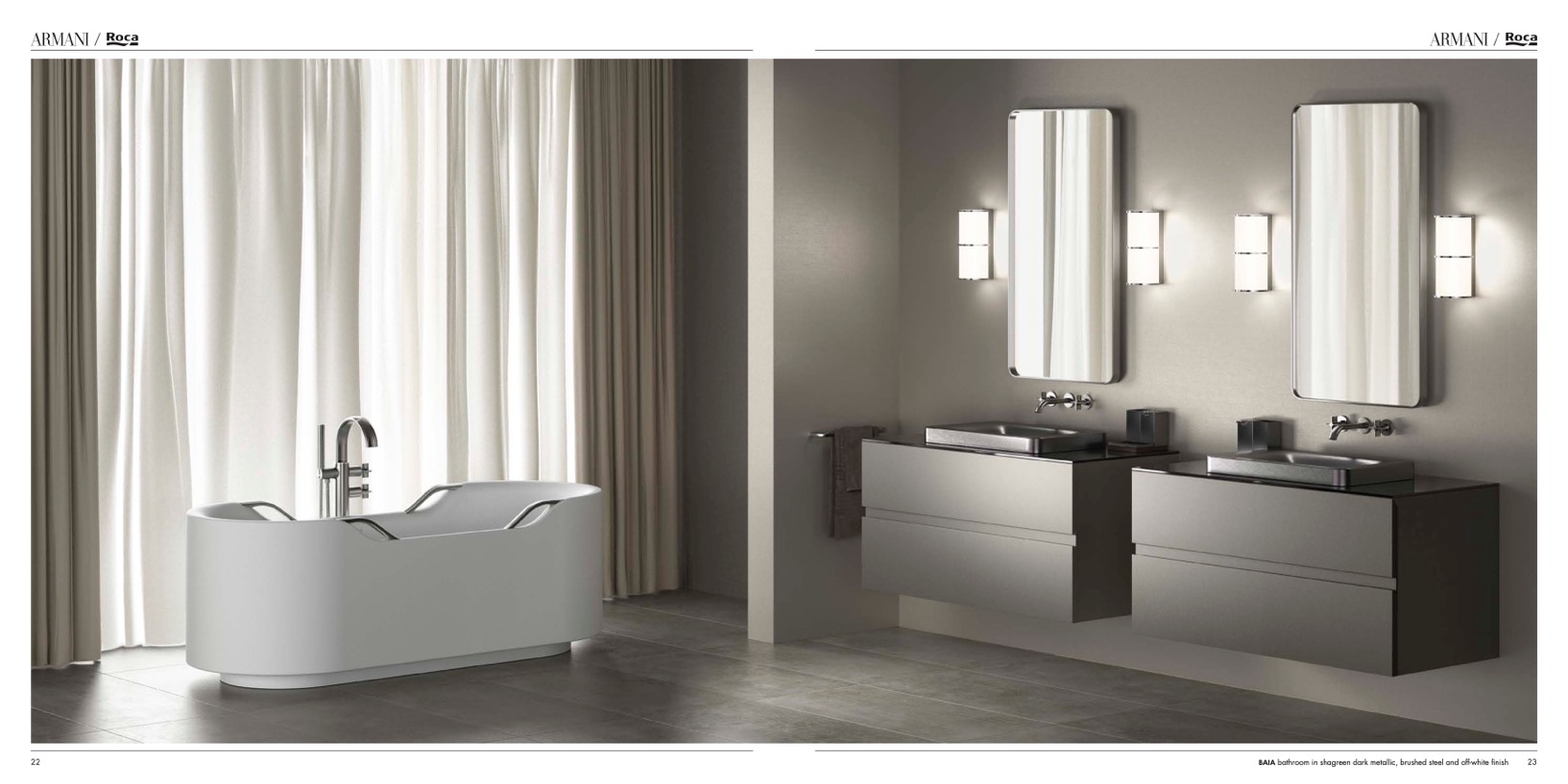 BAIA bathroom in shagreen dark metallic, brushed steel and off-white finish