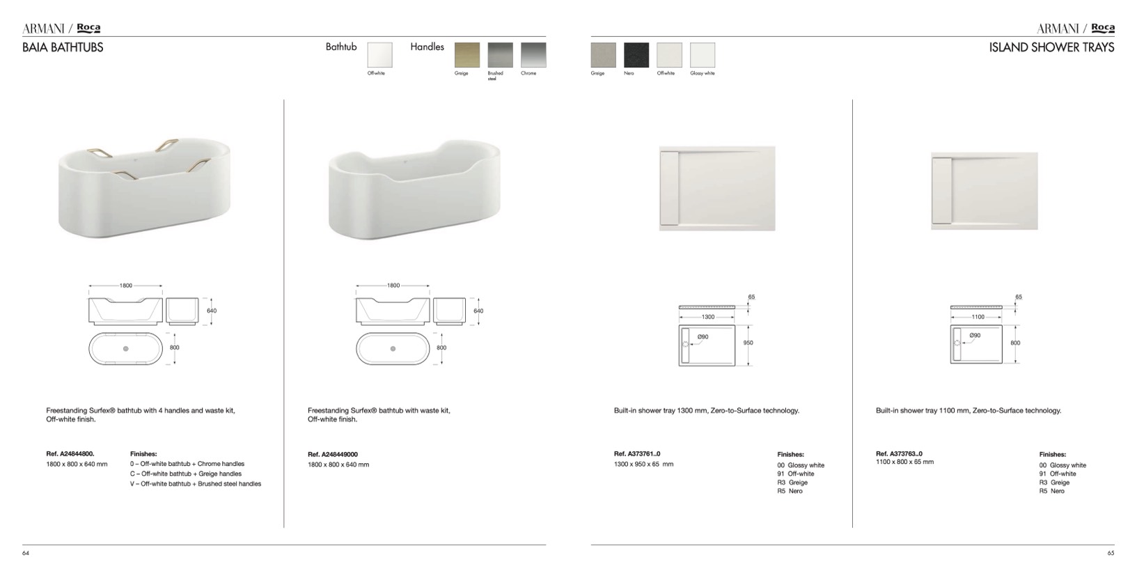 Built-in shower tray 1300 mm, Zero-to-Surface technology.