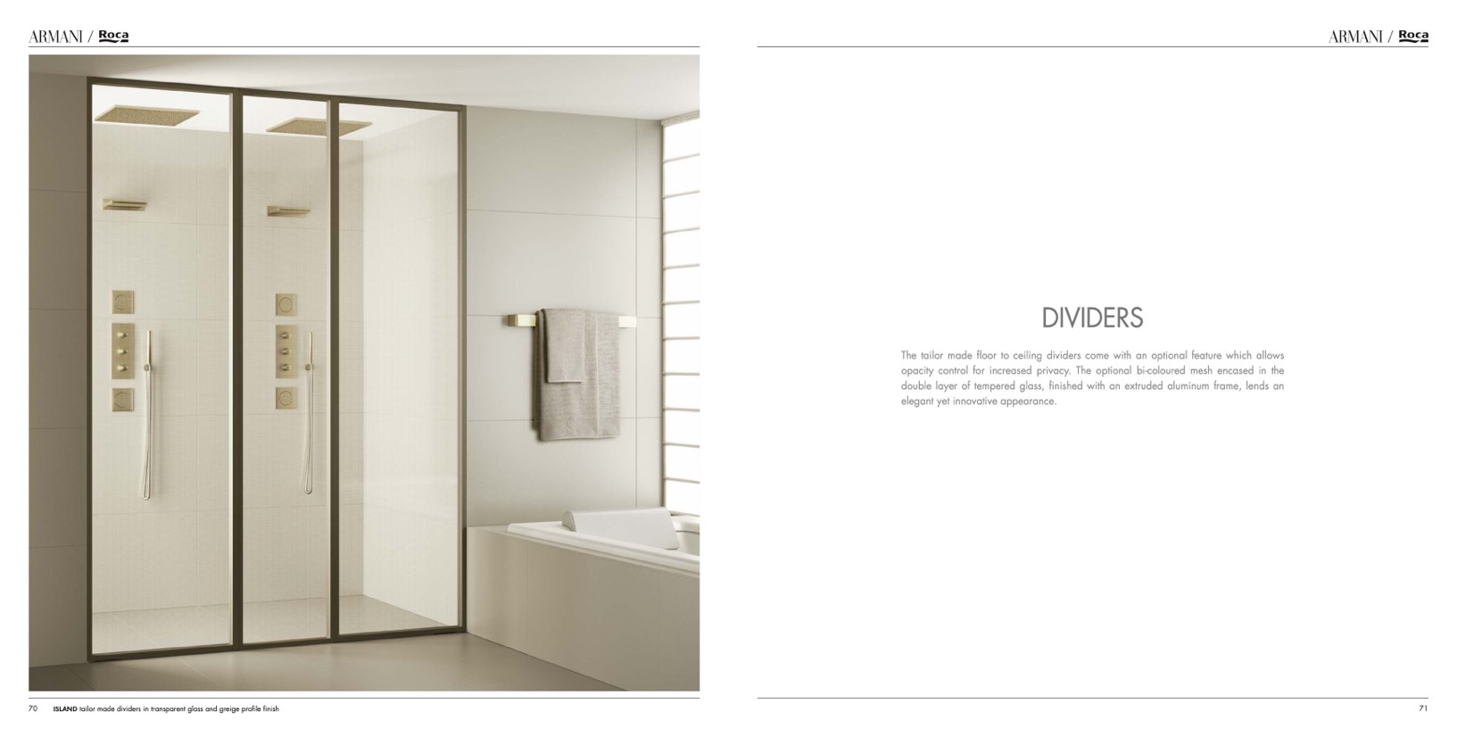 ISLAND tailor made dividers in transparent glass and greige profile finish