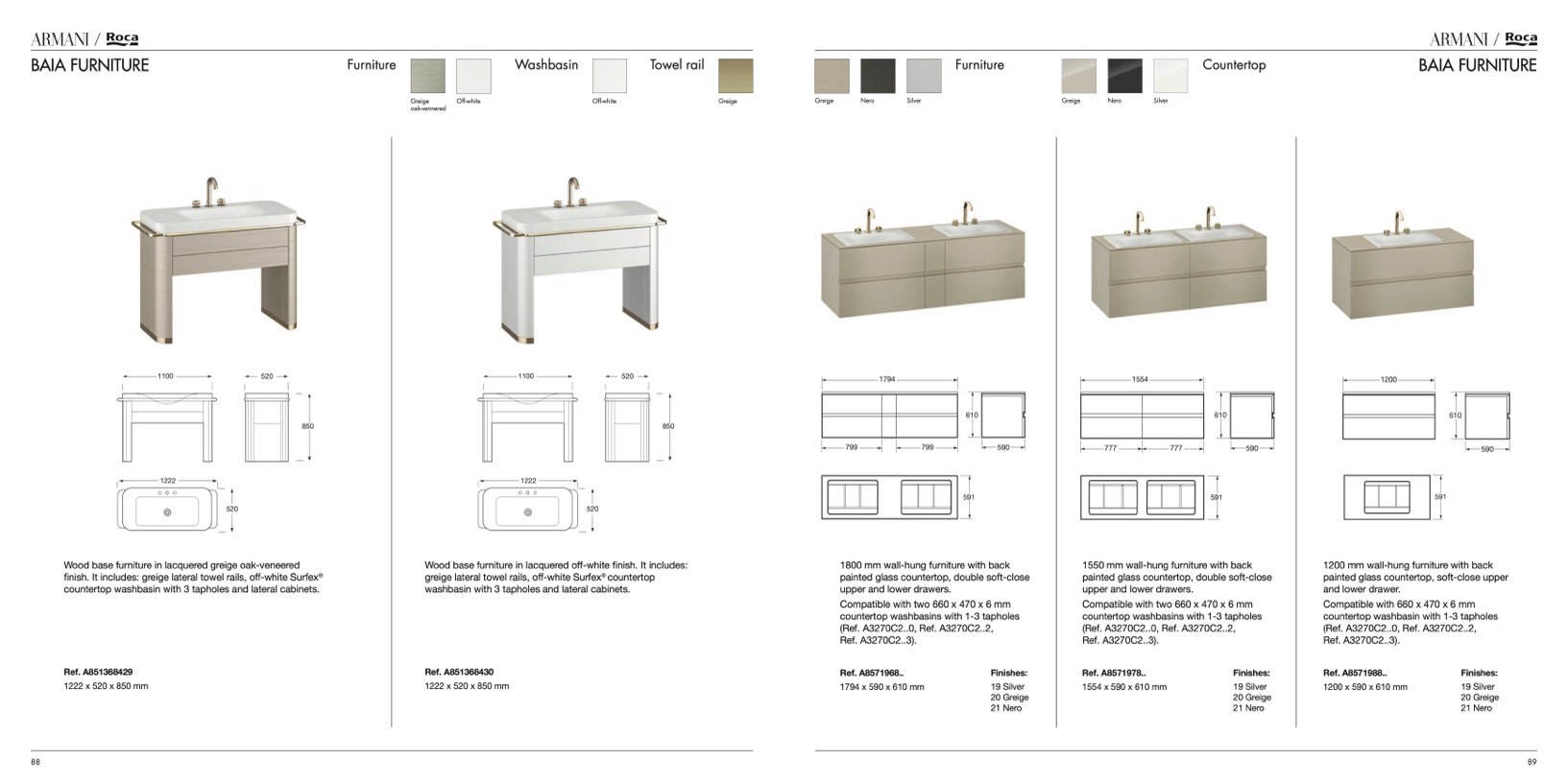 finish. It includes: greige lateral towel rails, off-white Surfex