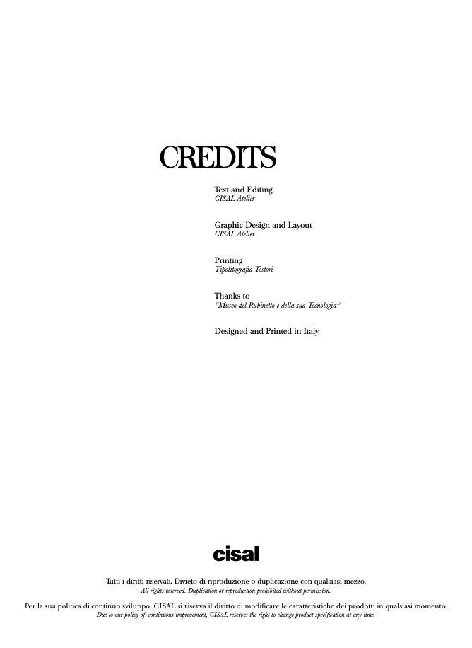 Per la sua politica di continuo sviluppo, CISAL si riserva il diritto di modificare le caratteristiche dei prodotti in qualsiasi momento.