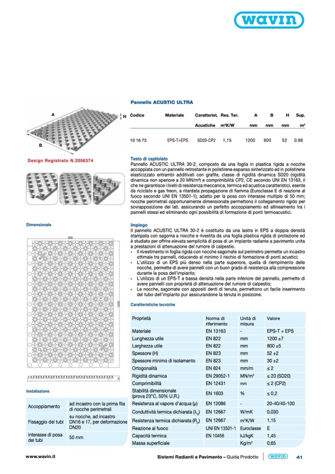 dinamica non speriore a 20 MN/m3) e comprimibilità CP2, CE secondo UNI EN 13163, il