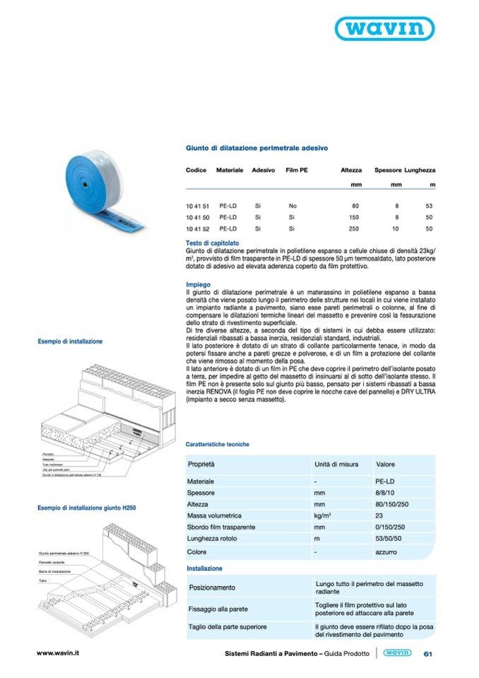 Giunto di dilatazione perimetrale adesivo