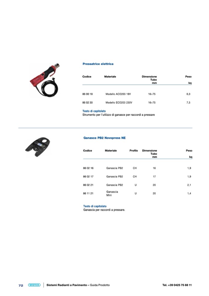 Ganascia per raccordi a pressare.