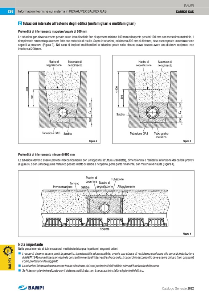 segnali la presenza (Figura 2). Nel caso di impianti multifamiliari le tubazioni poste nello stesso scavo devono avere una distanza reciproca non
