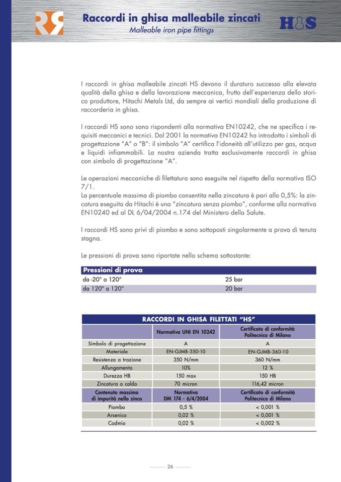 I raccordi HS sono sono rispondenti alla normativa EN10242, che ne specifica i re-