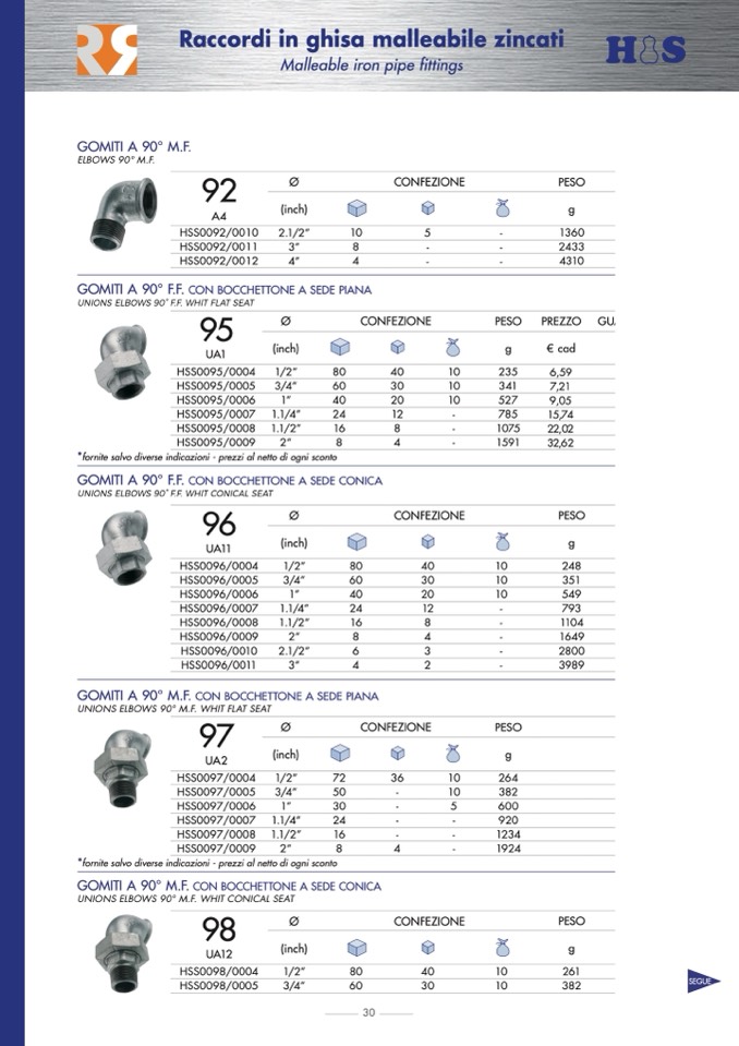 UNIONS ELBOWS 90° F.F. WHIT CONICAL SEAT