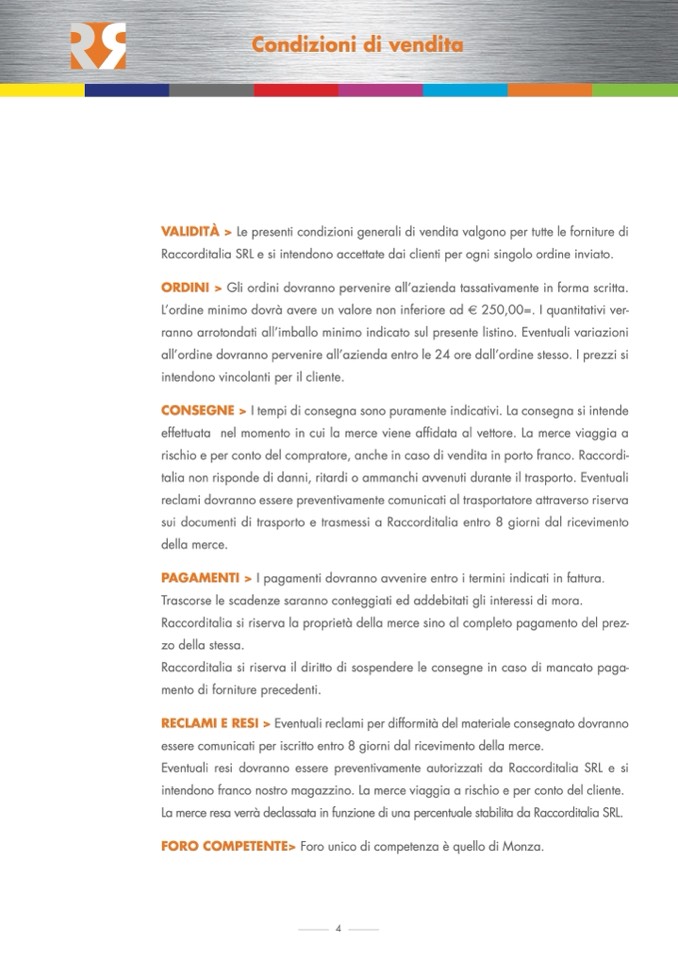 Raccorditalia SRL e si intendono accettate dai clienti per ogni singolo ordine inviato.