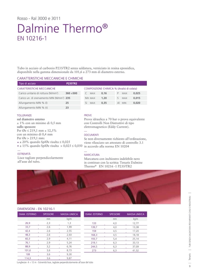 disponibile nella gamma dimensionale da 101,6 a 273 mm di diametro esterno.