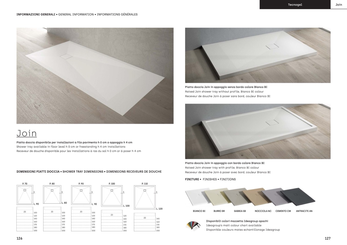 DIMENSIONI PIATTI DOCCIA • SHOWER TRAY DIMENSIONS • DIMENSIONS RECEVEURS DE DOUCHE