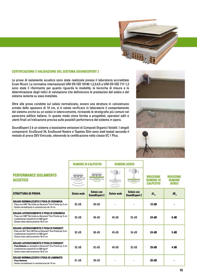 componenti: EcoSound 24, EcoSound Nastro e Tapetex Slim sono stati testati secondo il