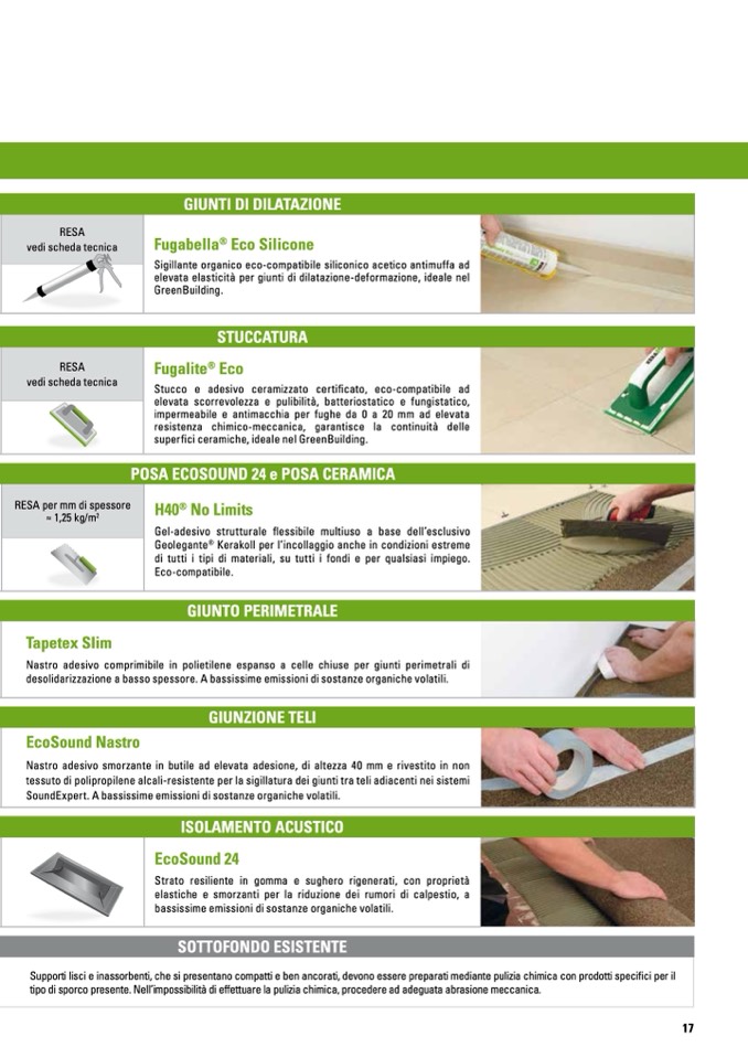 desolidarizzazione a basso spessore. A bassissime emissioni di sostanze organiche volatili.