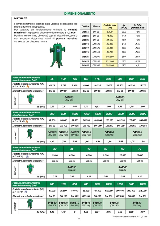 massima in ingresso al dispositivo deve essere ≤ 1,2 m/s.
