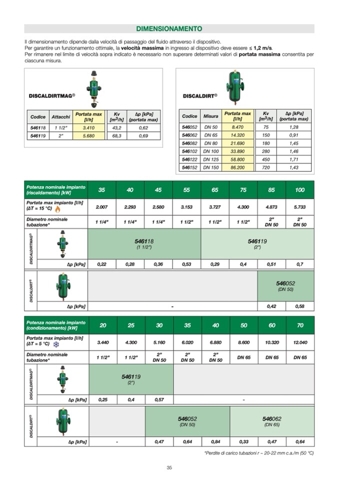 *Perdite di carico tubazioni r ~ 20-22 mm c.a./m (50 °C