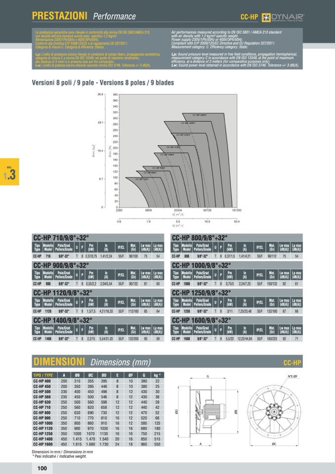 Le prestazioni aerauliche sono rilevate in conformità alla norma EN ISO 5801/AMCA 210