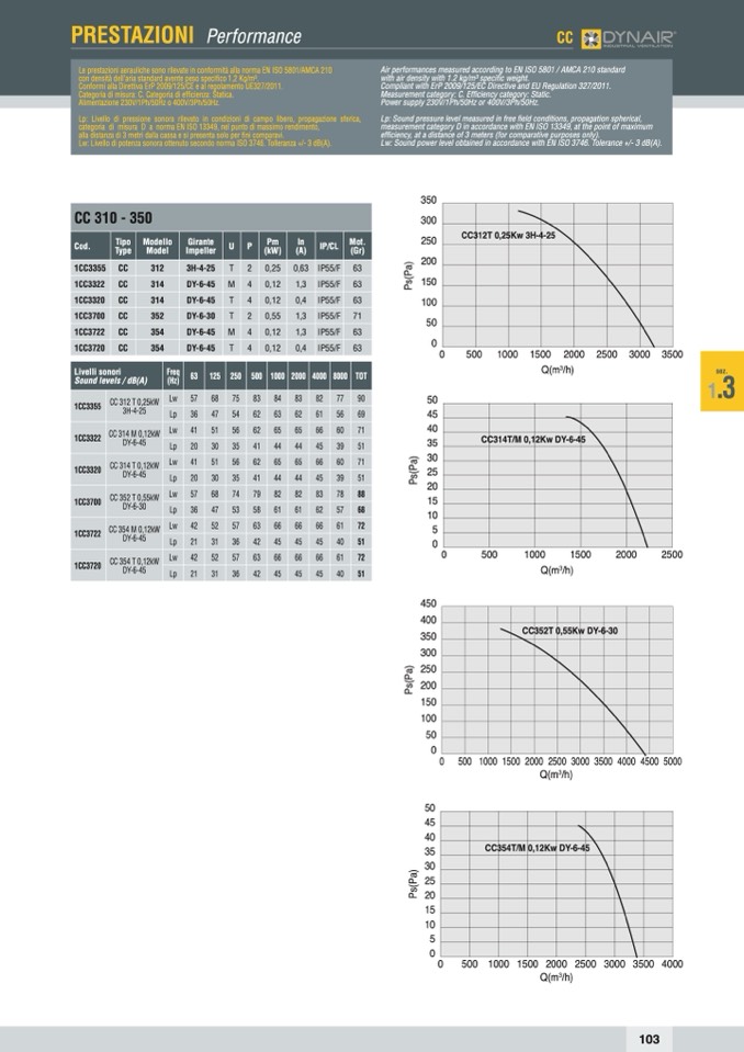Le prestazioni aerauliche sono rilevate in conformità alla norma EN ISO 5801/AMCA 210