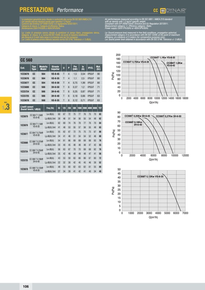 Le prestazioni aerauliche sono rilevate in conformità alla norma EN ISO 5801/AMCA 210