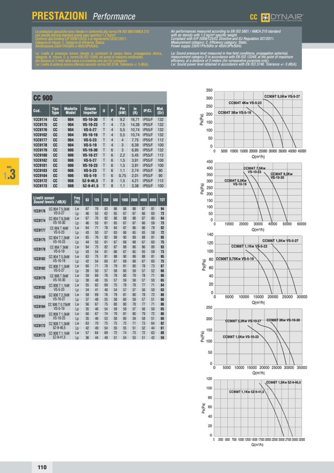 Le prestazioni aerauliche sono rilevate in conformità alla norma EN ISO 5801/AMCA 210