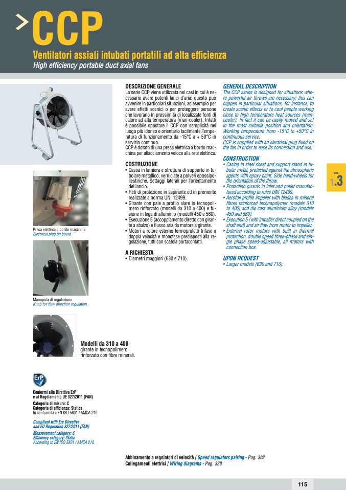 In conformità a EN ISO 5801 / AMCA 210.
