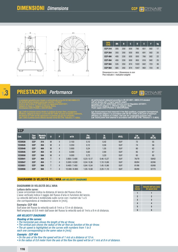 Le prestazioni aerauliche sono rilevate in conformità alla norma EN ISO 5801/AMCA 210