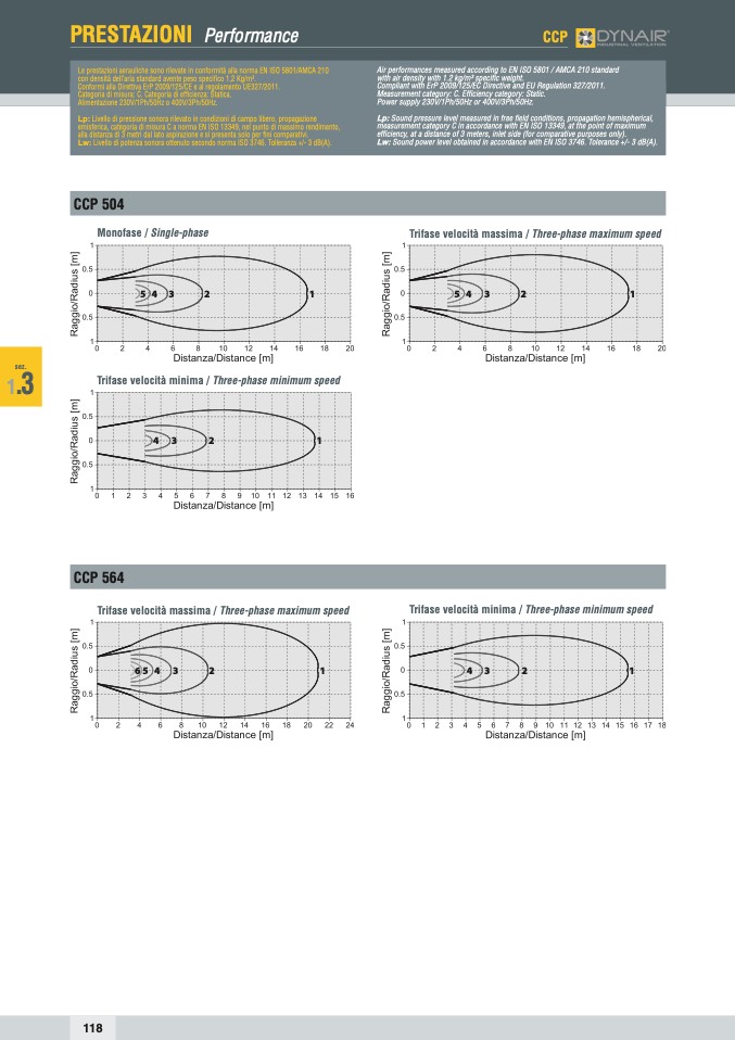 Le prestazioni aerauliche sono rilevate in conformità alla norma EN ISO 5801/AMCA 210
