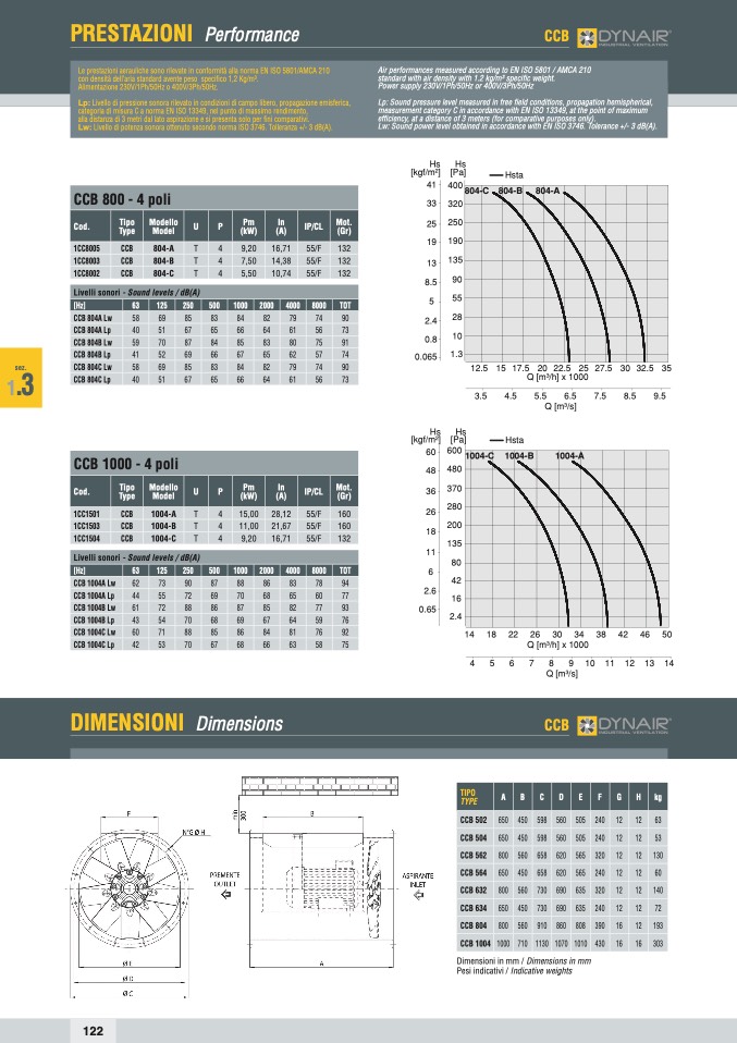 Le prestazioni aerauliche sono rilevate in conformità alla norma EN ISO 5801/AMCA 210